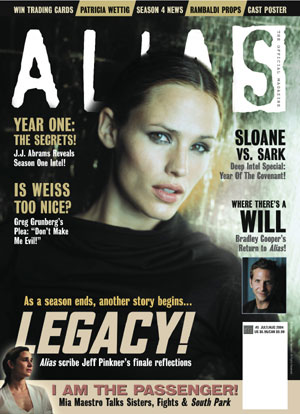 As a fourth season is confirmed, we find out what creator J.J. Abrams has in store for the Alias team, plus he'll be reflecting on the first season, in an exclusive episode-by-episode analysis! Confidential files from recent in-depth interrogations of Bradley Cooper (a.k.a. Will Tippin), Greg Grunberg (a.k.a. Agent Eric Weiss) and Mia Maestro, the newest recruit to the Alias team and Sydney's half sister, Nadia Santos, are laid open for your scrutiny!